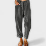 Tyto manšestrové kalhoty mají volný a pohodlný střih, zatímco jejich výrazná struktura dodává outfitu vintage kouzlo a hřejivý charakter. Středně vysoký pas se sklady působí elegantně a ohrnutý lem vytváří ležérní, moderní vzhled. Jsou ideální pro chladnější dny a snadno se kombinují s pleteninami i základními kousky.